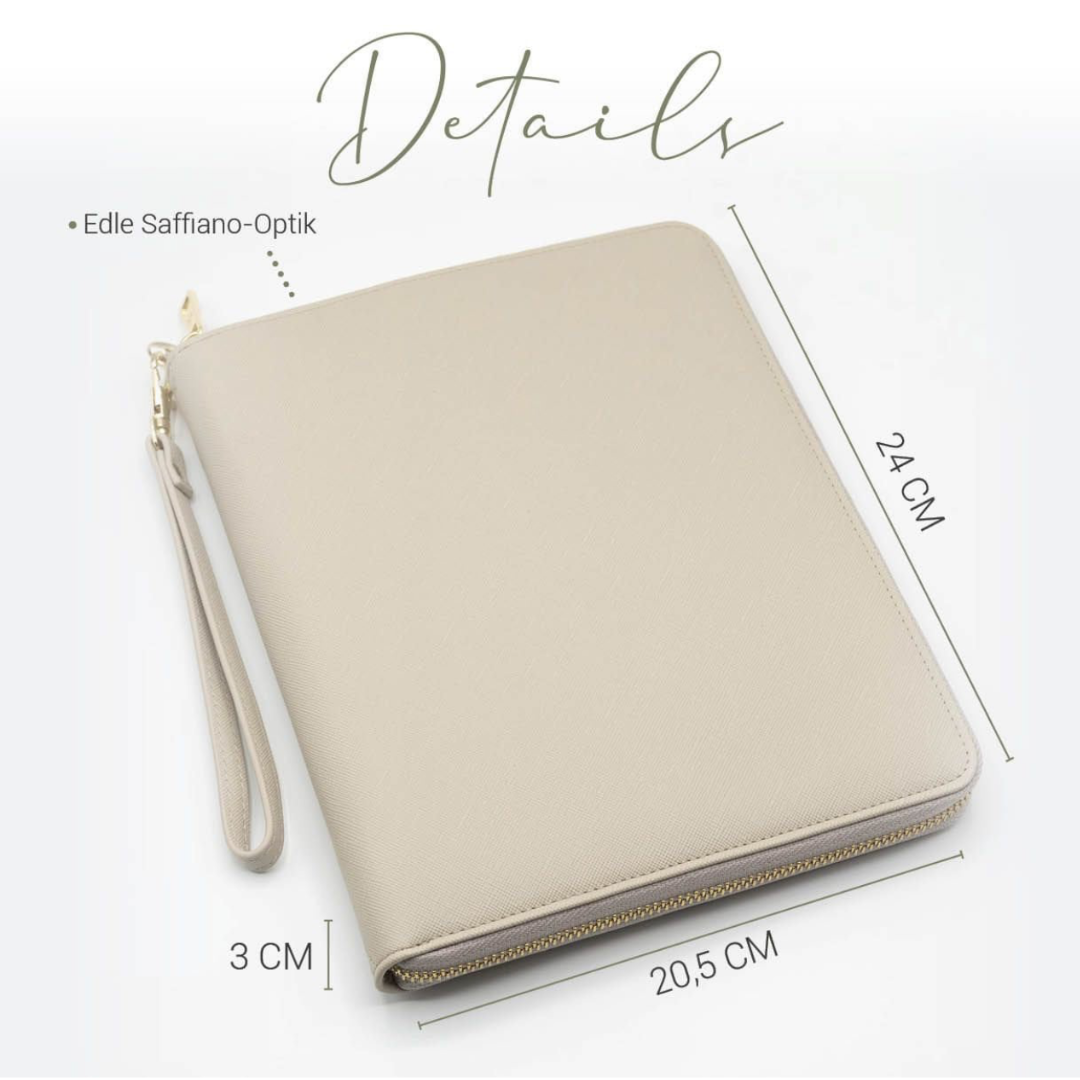 Absolut. Der Organizer begleitet dich durch die Schwangerschaft und darüber hinaus bei allen Kinderarzt-Terminen. Er bietet Platz für U-Heft, Impfpass, Mutterpass und wichtige Dokumente – alles an einem Ort.