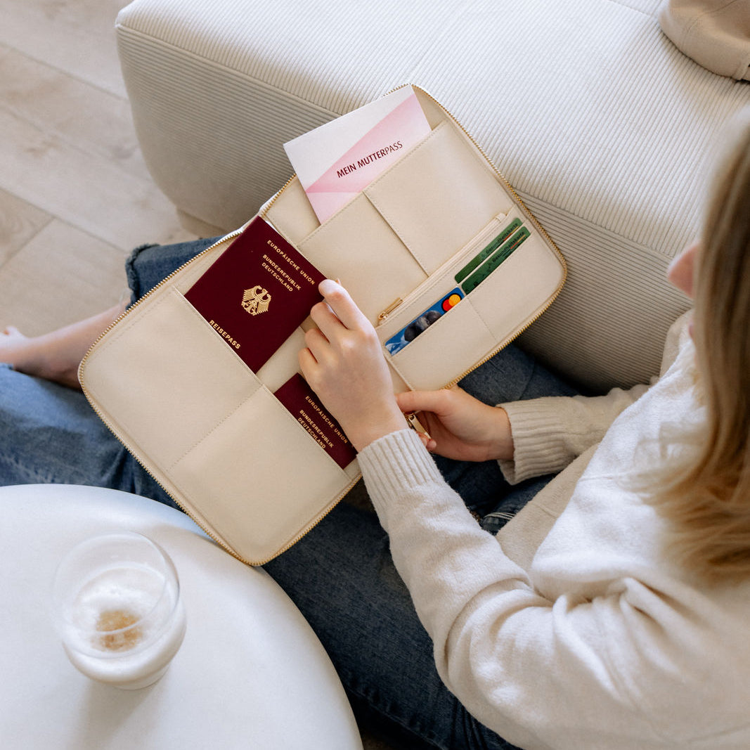 „Praktische Begleiter für deinen Mama-Alltag. Von U-Heft-Organizer bis Unterlagen-Taschen – stylisch & durchdacht.“